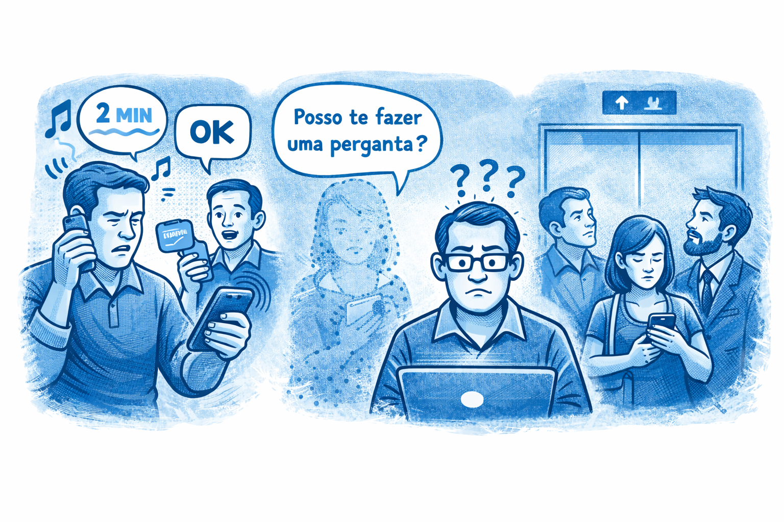 Outra figura curiosa da vida contemporânea é aquela pessoa que envia a mensagem: “posso te fazer uma pergunta?”. Em princípio parece algo simples, mas o problema é que, após essa frase inicial, o indivíduo simplesmente desaparece. O destinatário então fica preso numa espécie de suspense psicológico involuntário. Que pergunta será essa? É algo grave? É um favor impossível? O cérebro humano, naturalmente dramático, passa a imaginar todas as possibilidades enquanto o autor da mensagem segue vivendo tranquilamente a própria vida.