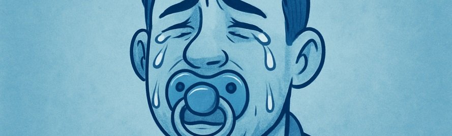 O humor aqui é inevitável, mas o pano de fundo é um sintoma cultural: vivemos uma infantilização prolongada, onde o amadurecimento é constantemente adiado. Entre boletos, crises econômicas e ansiedades existenciais, ser adulto parece cada vez menos atraente. A chupeta, nesse cenário, vira símbolo e protesto: um “não quero crescer” dito com acessórios de bebê, mas também um grito por cuidado e afeto num mundo que se mostra cada vez mais impessoal e competitivo.