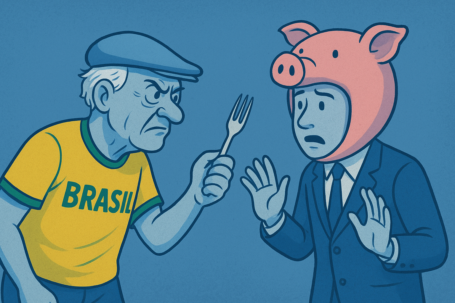 Dizem que o 7 de Setembro é dia de desfile, bandeira tremulando e discursos sobre liberdade. Mas o que se viu neste ano foi um espetáculo cênico digno de teatro do absurdo. No meio da rua, um senhor trajado com a já clássica blusa do Brasil, uniforme oficial do patriotismo de ocasião, decidiu que sair do restaurante com um garfo na mão era pouco. Ele precisou transformar o utensílio em símbolo de resistência, mirando contra um rapaz fantasiado de porquinho rosa que ousava performar no espaço público. Eu vi, revi, assisti, e depois assisti novamente. Eu posso afirmar: a cena é digna de uma charge que dispensa legendas.